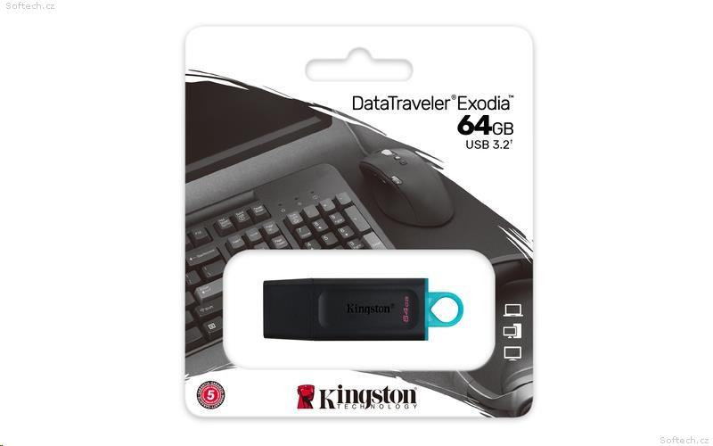 Kingston DataTraveler Exodia - Jednotka USB flash - 64 GB - USB 3.2 Gen 1 - černá black with teal