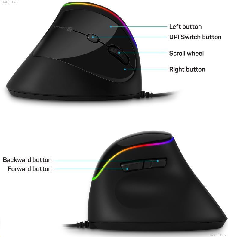 CONNECT IT GAME FOR HEALTH ergonomická vertikální myš, podsvícená, drátová, ČERNÁ