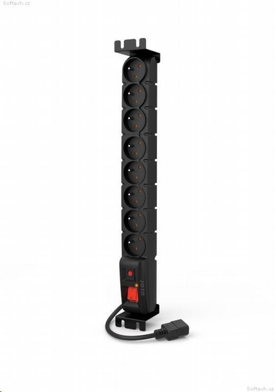 19" rozvodný panel ACAR 8x230V s IEC konektorem pro UPS, vypínač, indikátor napětí, přepěťová ochrana, kabel 1,5m