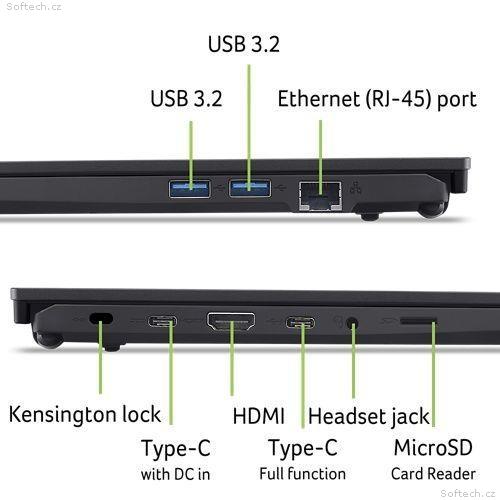 * 1x USB-C: USB 3.2 Gen2 (až 10Gb/s, podpora DisplayPort, napájení DC-in 20V/65W)