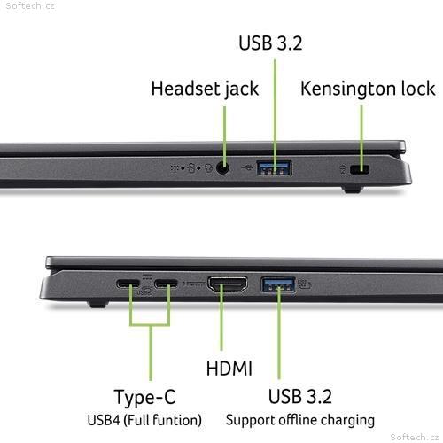 * 2x USB typu C: USB4® 40Gbps/DisplayPort přes USB-C/USB nabíjení 5V; 3A/DC-in 20V; 65W