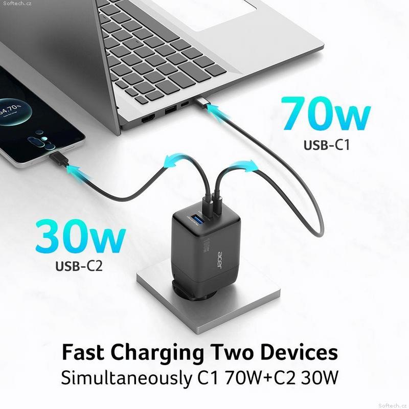 • Acer 100W GaN charger - Black, 3 nabíjecí porty: 2