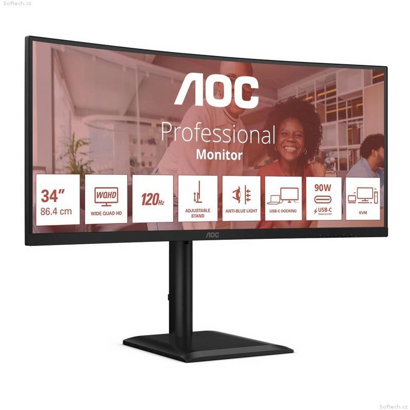 CU34E4CV nabízí 34" WQHD displej s obnovovací frekvencí 120 Hz, HDR10 a hardwarovou ochranou proti modrému světlu pro čistý a pohodlný obraz. Díky funkci Smart KVM, dokovací stanici s 90W Power Delivery a elegantnímu profesionálnímu designu je ideálním monitorem pro zvýšení produktivity a efektivní multitasking.