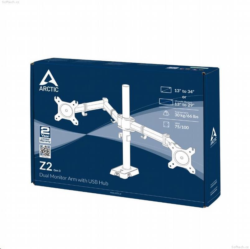 ARCTIC stolní držák Z2 (Gen3) pro 2x LCD do 34", nosnost 2x15kg, 4x USB HUB, černý (black)