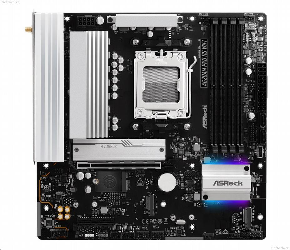 • MB Asrock A620AM PRO RS WIFI, AM5, 4xDDR5, M.2, W6