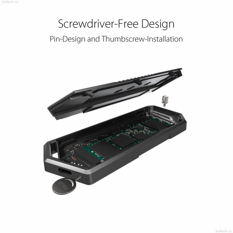 ASUS ROG STRIX ARION SSD NVME AURA case, USB-C 3.2, M.2 NVMe SSD kovový box, délka 30-80 mm, AURA RGB