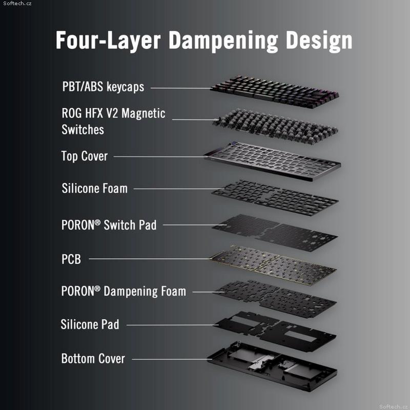 Vylepšený zážitek z psaní: Integrované čtyřvrstvé tlumení absorbuje pingovací zvuky a nabízí pohodlnější pocit při psaní