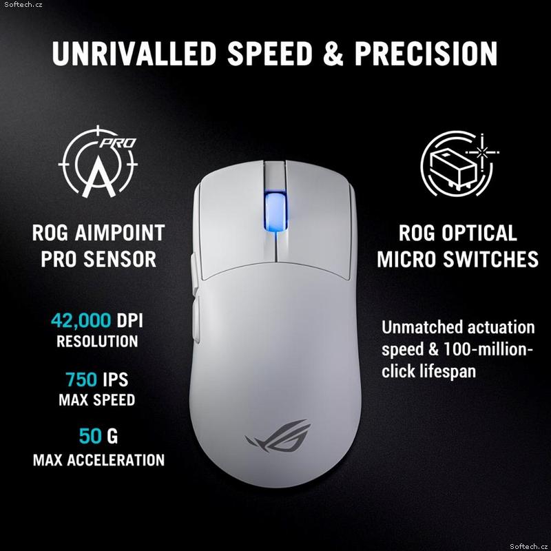 • ASUS Herní myš ROG Harpe II Ace, Bezdrátová, bílá