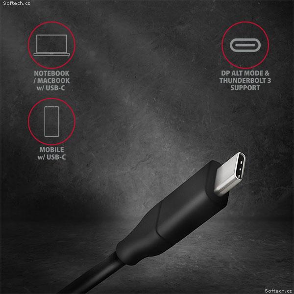 • AXAGON RVC-DPC, USB-C -> DisplayPort redukce, kabe