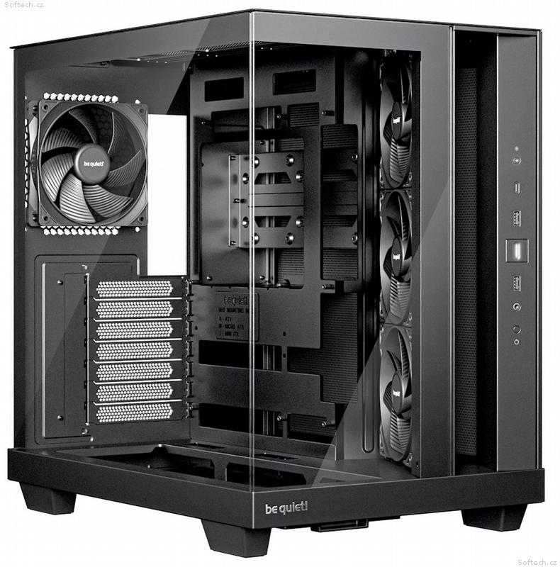 Předinstalované ventilátory: 1× Pure Wings 3 120mm PWM (zadní), 3× Pure Wings 3 120mm PWM Reverse (boční)
