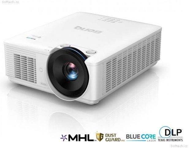Laserový WUXGA projektor s rozlišením 1920 x 1200 obrazových bodů nabízí svítivost 6000 ANSI lumenů, kontrastní poměr 3 000 000:1 a 96 % pokrytí normy Rec.709 pro mnohem realističtější barvy a věrný obraz. Technologie BlueCore Laser zajišťuje nulovou odchylku laserových diod, zvyšuje světelný tok do světelného tunelu a zvyšuje jeho účinnost. Projektor dokáže vytvořit promítací plochu o velikosti až 300" a podporuje také 3D zobrazení. Díky korekci lichoběžníkového zkreslení můžete mít obraz přesně tam, kde potřebujete. Podporuje také 360° projekci, promítání obrazu na strop, stěny, podlahu nebo dokonce šikmé plochy, například ve veřejných prostorách. Bezúdržbový provoz a dlouhou životnost projektoru zajistí prachotěsně uzavřená laserová jednotka splňující certifikaci IP5X.