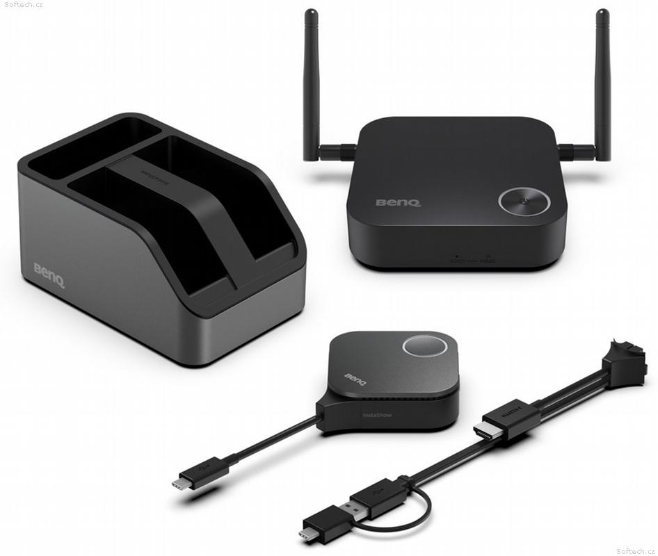 Konektory: USB-C (tlačítko), USB pro Touchback, HDMI výstup, RJ-45, USB-C napájení (přijímač)