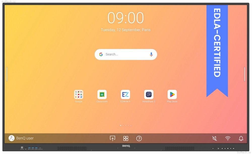 Panel obsahuje software EZWrite 6 pro ukládání lekcí do editovatelných souborů s funkcí Cloud Whiteboarding a integrací Google Classroom. Aplikace InstaShare 2 umožňuje bezdrátové sdílení obrazovky z jakéhokoli zařízení a současné zobrazení více obrazovek s různými typy obsahu.