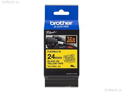 Kazeta s 24 mm páskou Brother TZe-FX651 s černým tiskem na žlutém podkladu byla navržena pro použití k identifikaci drátových a optických kabelů. Speciální lepidlo podkladové vrstvy umožňuje vícenásobné obalení štítku kolem kabelu nebo přilepení k němu ve stylu praporku.