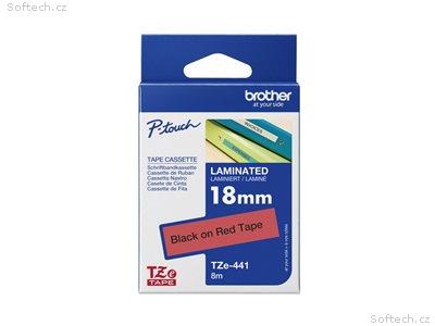 Originální kazeta s páskou Brother TZe-441 - černý tisk na červené, šířka 18 mm