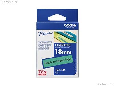 Originální kazeta s páskou Brother TZe-741 - černý tisk na zelené, šířka 18 mm