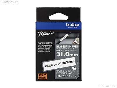"HSE-261E - NOVÁ originální bužírka, smrštitelnost 3:1, šířka 31,0 mm, černý tisk na bílé, délka 1,5 m z řady PRO Tape (design černo-modrého balení):