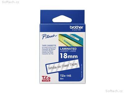 • Brother - TZe-145, průsvitná, bílá (18mm, laminova