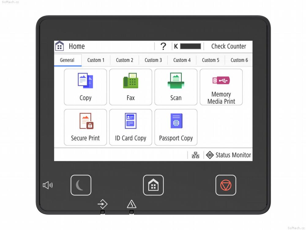 Další funkce: Přednastavené poměry zmenšení/zvětšení podle oblasti, oboustranné kopírování, nastavení sytosti, výběr typu originálu, oboustranný originál, třídění, N na 1, ostrost, vymazání rámečku, kopírování průkazů totožnosti, kopírování cestovních pasů, barevný režim, rezervní kopie