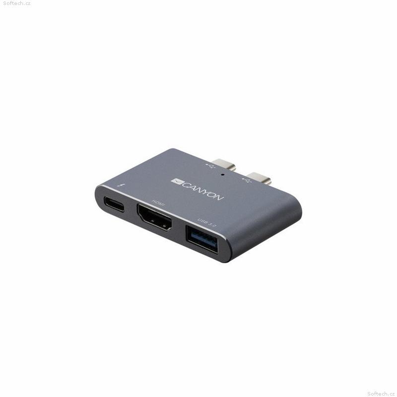 CANYON replikátor portů DS-1, 3v1, pro Apple Mackbook s Thunderbolt 3 (USB-C 100W)