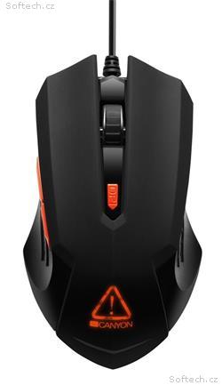 CANYON Herní myš STAR RIDER, 6 programovatelných tlačítek, senzor Pixart, až 3200 DPI, černá
