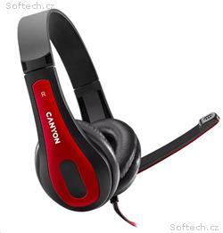 CANYON headset HSC-1, lehký, 3,5 mm jack TRRS, černo-červená