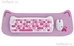 CANYON Kitty edice HSET-W6, bezdrátový SET EN klávesnice + optická myš + ochranné pouzdro + podložka, růžová