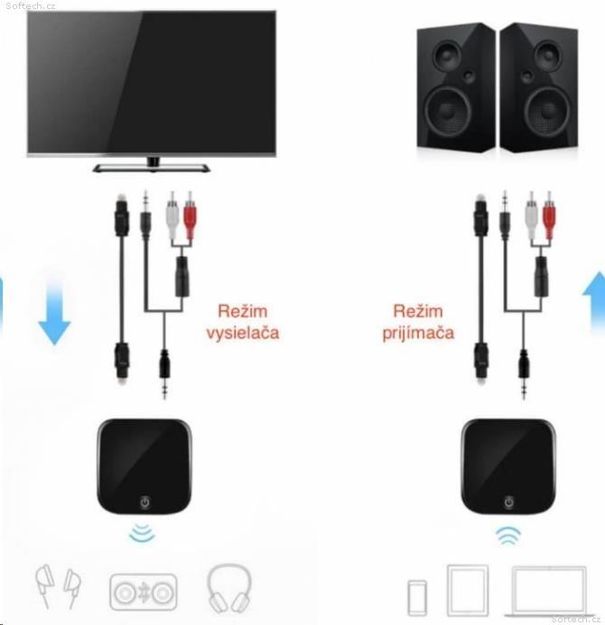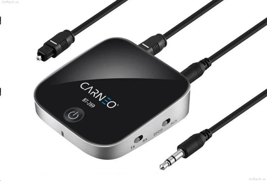Bluetooth transmitter a receiver BT-269 rozšíří domácí audio požitky přes sadu konektorů a Bluetooth 4.1 s aptX. Tento vysílač a přijímač mini Bluetooth lze připojit k širokému okruhu zvukových zařízení, jako jsou MP3, MP4, TV, rádio, autorádio nebo počítač, a umožní jim připojení Bluetooth. Použitím optického zařízení Toslink / SPDIF nebo 3,5 mm audio kabelu vytvoříte několik zvukových zařízení s podporou Bluetooth. Bluetooth přijímá i vysílá, což znamená více možností použití. V režimu vysílání zapojíte kabelovým AUX nebo optickým S / PDIF audio z televize či přehrávače a BT-269 jej odešle přes Bluetooth až do 2 reproduktorů nebo sluchátek, takže se iv noci můžete naplno ponořit do atmosféry filmu. Pomocí bezdrátového připojení můžete odstranit kabely a připojit jeden nebo dokonce dva mobilní telefony k reproduktorům. Nyní můžete synchronizovat tradiční reproduktory se zařízením Smartphone a přenášet hudbu bezdrátově. Nebo stereo s Bluetooth sluchátky, možnosti jsou téměř nekonečné.