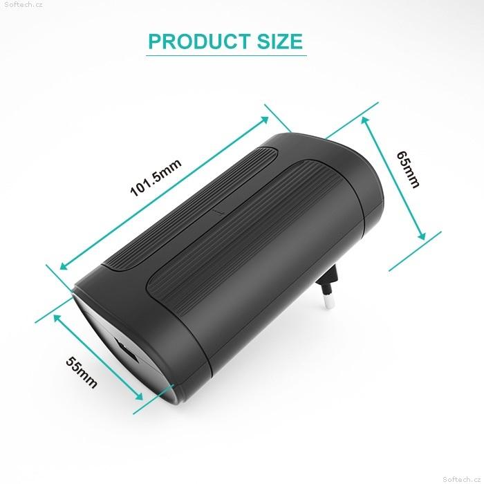 - Velmi malé rozměry, stejná velikost běžného adaptéru