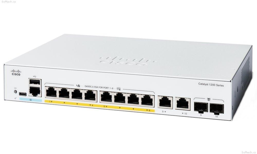Cisco Catalyst 1200-8P-E-2G - Přepínač - L3 - inteligentní - 8 x 10/100/1000 (PoE+) + 2 x combo Gigabit SFP/RJ-45 - Lze montovat do rozvaděče - PoE+ (67 W)