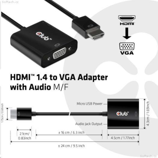 Club3D Adaptér HDMI 1.4 na VGA (M, F), Active with audio