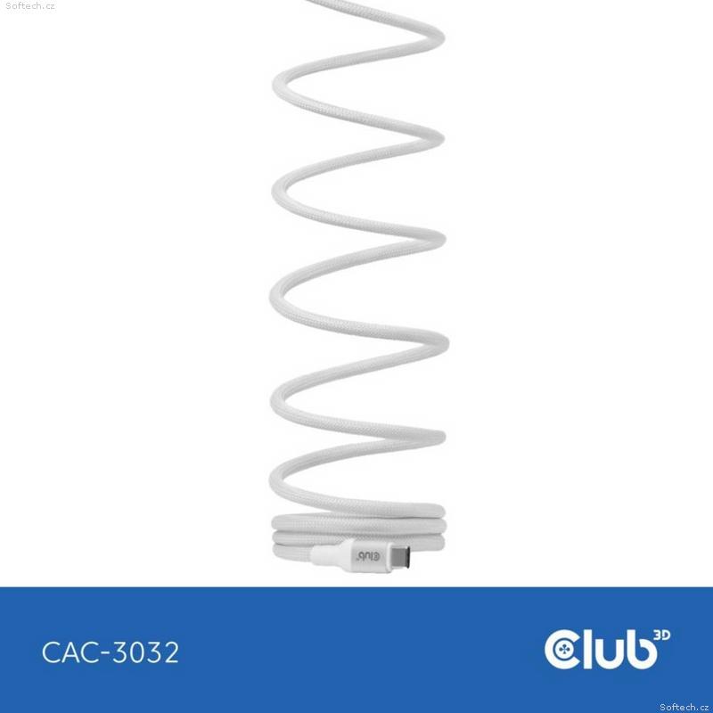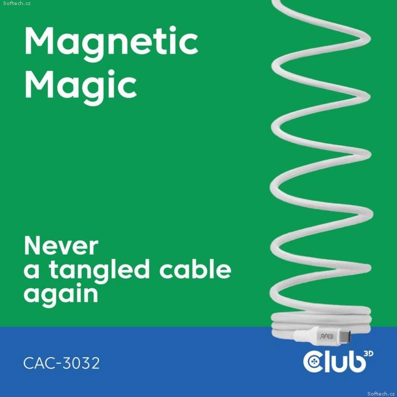 Club3D Kabel magnetický USB-C, 240W PD3.1, 480 Mbps, 2m, bílá