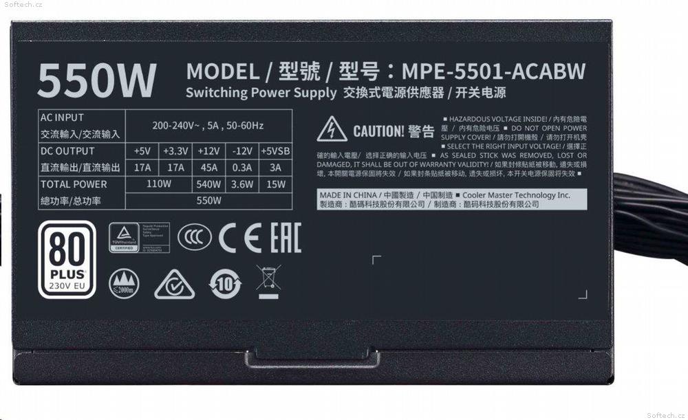 • Cooler Master zdroj MWE White 550W V2, 120mm, 80+