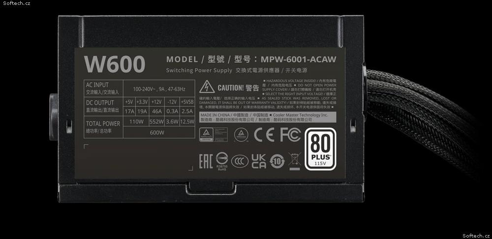 • Cooler Master zdroj Elite NEX 600W 230V, 120mm, 80