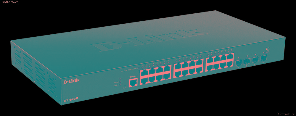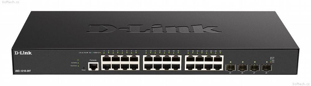 D-Link DXS-1210-28T je 28-portový 10G inteligentní L2/L3 řízený přepínač s 10G/25G porty SFP28 pro uplink. Nabízí 24 metalických 10GBase-T RJ-45 portů a 4 dvourychlostní porty SFP28 s podporou 25-Gigabit SFP28 a 10-Gigabit SFP+ transceiverů. Switch DXS-1210-28T je vhodný jako páteřní prvek v malých a středních (SMB) sítích nebo pro agregaci v rozsáhlých podnikových (Enterprise) sítích. V serverovnách najde uplatnění jako Top of Rack (ToR) switch pro připojení serverů.