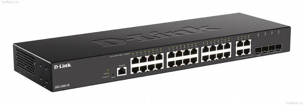 D-Link DGS 2000-28 - Přepínač - L3 - řízený - 24 x 10, 100, 1000 + 4 x kombinované Fast Ethernet, Gigabit SFP - Lze montovat do rozvaděče