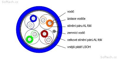 *stíněné provedení F/FTP (AL fólie celkově i jednotlivé páry)