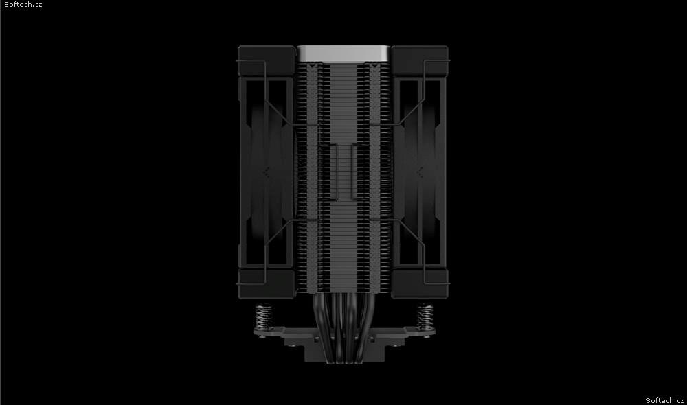 Chladič pro procesory Intel i AMD je vybaven čtyřmi heatpipe a dvěma 120 mm ventilátory s PWM regulací. K připojení slouží 4-pin PWM konektor.
