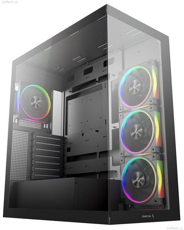 CG580 4F V2 vyniká předinstalovaným systémem chlazení se třemi PWM ARGB ventilátory s reverzním prouděním na boku a jedním standardním PWM ARGB ventilátorem vzadu. Tato konfigurace vytváří optimalizovaný průtok vzduchu, který zvyšuje tepelnou účinnost. Koordinované ARGB osvětlení rámů a kroužků ventilátorů podporuje synchronizaci se základní deskou pro jednotný a dynamický vizuální efekt.