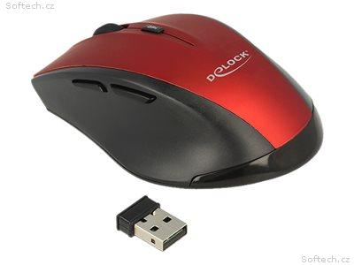 Delock - Myš - ergonomický - pravák - optický - 5 tlačítka - bezdrátový - 2.4 GHz - bezdrátový přijímač USB - černá, červená - maloobchod