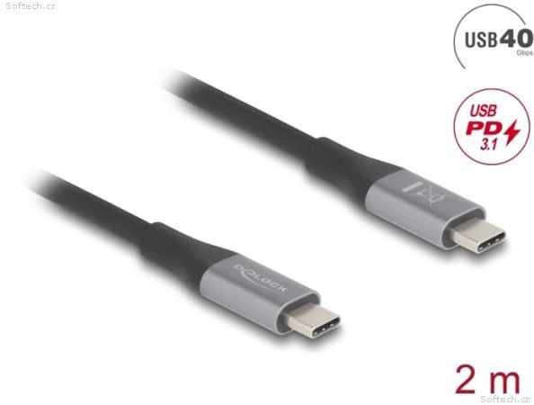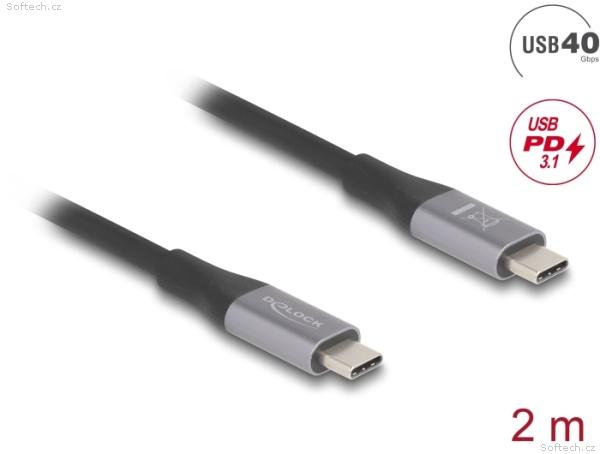 Delock - USB kabel - 24 pin USB-C (M) do 24 pin USB-C (M) - USB 3.2 / Thunderbolt 3 - 2 m - podpora 8K60Hz (7680 x 4320), napájení USB (240 W), rychlost prenosu dat až 40 Gbps, podpora napájení Power Delivery 3.1 - šedá, cerná