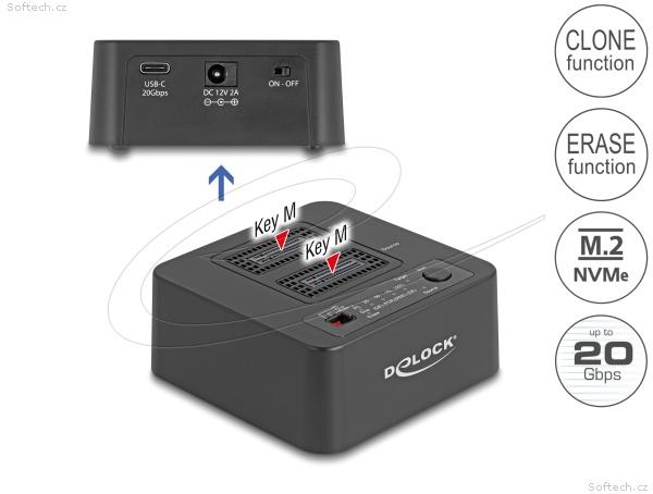 Delock - Dokovací stanice SSD - funkce klonování a mazání - oddílu: 2 - M.2 - M.2 NVMe Card, PCIe (NVMe) - USB-C 3.2 (Gen 2) - cerná