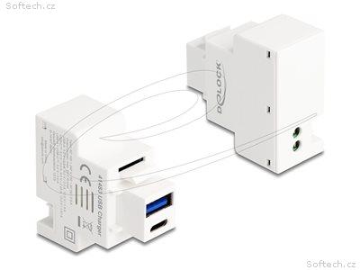 Delock - Zacvakávací modul (keystone) - PD 20 W - USB, USB typu C - 1 zásuvka USB, 1 zásuvka USB-C - 3 A - bílá