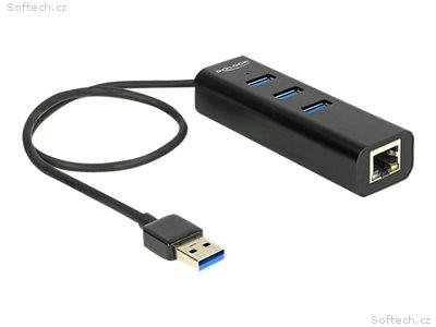 Delock USB 3.0 Hub 3 Port + 1 Port Gigabit LAN 10, 100, 1000 Mb, s - Rozbočovač - 3 x SuperSpeed USB 3.0 + 1 x 10, 100, 1000 - desktop