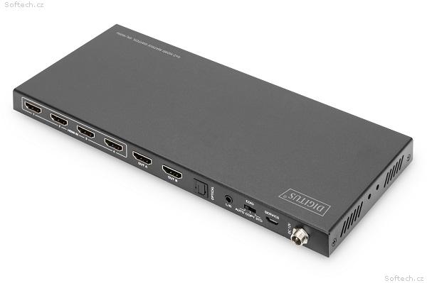 Digitus® HDMI 4x Matrix Switch, 4K/60Hz distribuuje mediální obsah až ze 4 zdrojů HDMI až na 2 záznamová zařízení (např. rekordér s pevným diskem) nebo přehrávací zařízení (TV, monitor, projektor atd.), současně a nezávisle. Pohodlné přepínání mezi zdroji HDMI a výstupními zařízeními pomocí dálkového ovládání, nezávisle a bez problémů s přepojováním kabelů. Díky podpoře 4K UHD si můžete vychutnat svůj mediální obsah v ultra vysokém rozlišení. Dokonalé a kompletní řešení distributora HDMI, ať už pro profesionální nebo komerční použití.