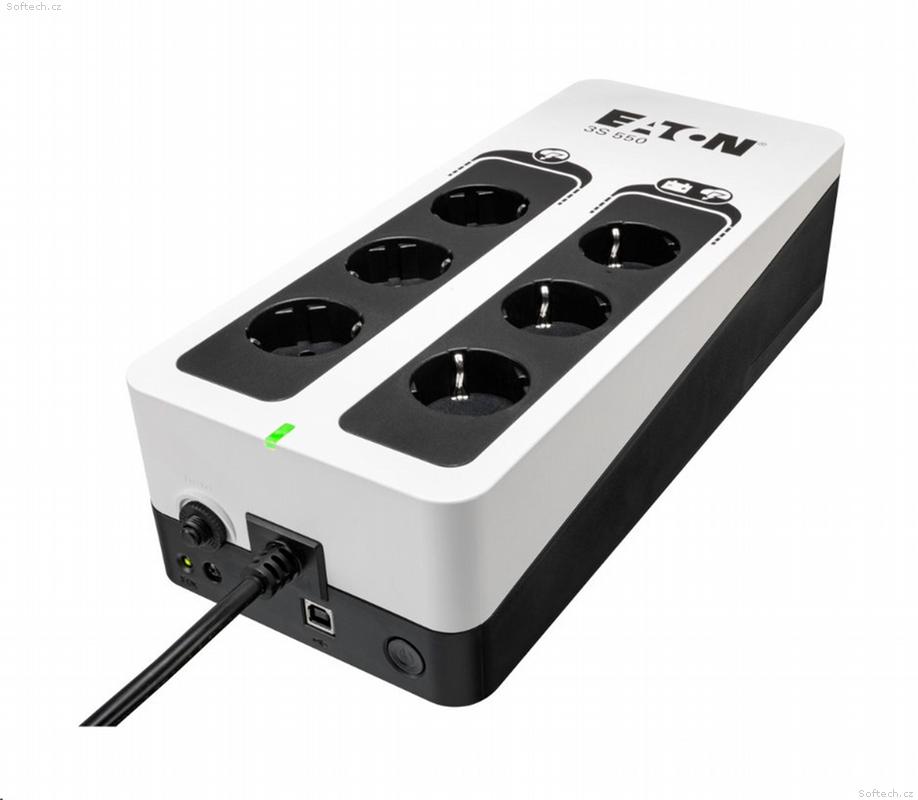 EATON UPS 3S 550 D, Off-line, Tower, 550VA, 330W, výstup 6x DIN (Schuko), bez ventilátoru