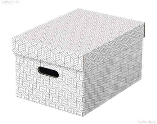 Sada 3 středních dekorativních lepenkových úložných boxů Esselte Home na dokumenty a další drobnosti v domácnosti. Rychlé a snadné sestavení.