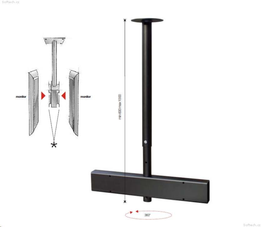 možnost dokoupení 2 držáku - zavěšení 2 obrazovek zády k sobě