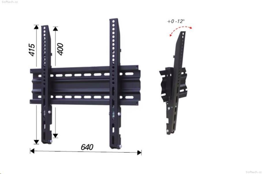 Profesionální stropní držák pro zavěšení televizorů, monitorů nebo informačních panelů na stropní konstrukci. Držák umožňuje nastavení vzdálenosti od stropu v rozmezí 64 až 104cm. Podporuje VESA standardy 100x100 až 600x400, nosnost 75kg. Možnost náklonu obrazovky 0° až -12°.