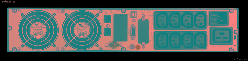 Výstupní přípojky: 8x IEC C13, 1x IEC C19
